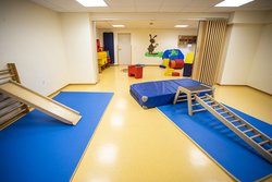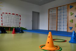 - Funktionsraum: Ebenfalls über den Flur zu erreichen ist der großzügige Funktionsraum. Dieser ist ausgestattet mit einer festen Sprossen-/ Kletterwand und den dazugehörigen Fallschutzmatten. Die Kinder haben während des Freispiels jederzeit die Möglichkeit, den Raum in kleinen Gruppen, auch unbeaufsichtigt, zu nutzen. Spontane Bewegungsangebote werden im Zuge des Bewegungskindergartens jederzeit gerne von den Kindern angenommen, ebenso wie musikalische Angebote, die wöchentlich angeboten werden. Mittags wird dieser Bereich den 4-5 jährigen Übermittagskindern als Ruheraum zur Verfügung gestellt.