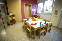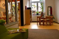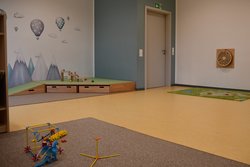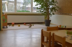 In dieser Einrichtung stehen uns zwei Gruppenräume mit angeschlossenem Nebenraum, einer Küche, einem Funktionsraum, ein Bewegungsbereich und das Außengelände zur Verfügung, die sich in themenbezogene Bereiche aufteilen.